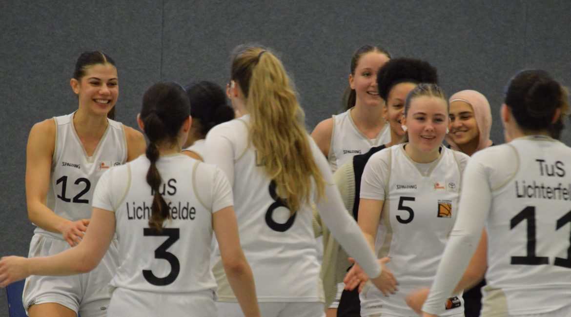 Nach dem Sieg über den Eimsbüttler Turnverband, setzten unsere 1. Damen noch einen drauf. Mit nur sechs Spielerinnen empfingen heute die TuSLi-Damen die Gäste aus Rotenburg. In einem spannenden Duell zeigten sich die Gäste jedoch stetig kämpferisch und gefährlich und brachten den 66:60-Sieg der TuSLi-Damen immer wieder in Gefahr. Das erste Viertel startete stark: Helen Spaine begeisterte die ZuschauerInnen bereits hier mit 12 Punkten; am Ende wird sie mit 23 Punkten Top-Scorerin der Partie. Nun fällt sie verletzungsbedingt bis zur Rückrunde aus – wir wünschen an dieser Stelle gute Besserung und schnelle Genesung! Vor allem die Konzentration und Energie wurden dann in der Halbzeit getankt, denn mit einem Spielstand von 28:27 wollten sich Coaches und Team nicht zufriedengeben. Das dritte Viertel startet vielversprechend: Mit einem 10:2-Lauf kann das Team vor heimischer Kulisse die Führung auf 48:44 ausbauen und im letzten Viertel durch eine starke offensive Leistung zum 66:60-Sieg ausbauen.