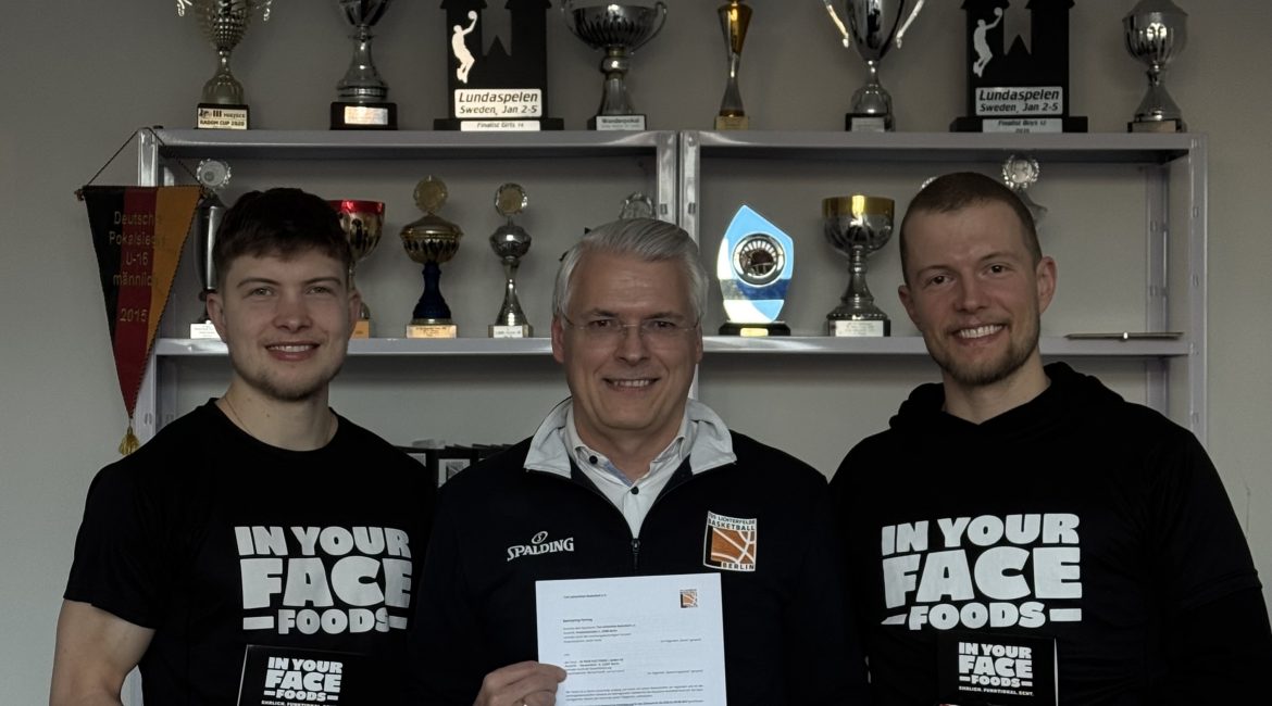 Auch Bennet und Jannes freuen sich über die Zusammenarbeit: „Für uns ist diese Partnerschaft etwas ganz Besonderes. Jannes und ich haben beide beim TuS Lichterfelde Basketball angefangen – hier haben wir als junge Spieler unsere ersten Schritte gemacht und Basketball spielen gelernt. Diese Zeit hat uns geprägt und wir haben bis heute eine starke Verbindung zum Verein. Dass wir jetzt einige Jahre später als Profibasketballer mit unserem Start-up IN YOUR FACE FOODS mit TuSLi zusammenarbeiten können, schließt für uns auf eine besondere Weise den Kreis. Wir freuen uns sehr, den Verein und seine jungen, ambitionierten Spielerinnen und Spieler unterstützen zu können – und auf viele gemeinsame Aktionen bei Spielen, Camps und Events.“